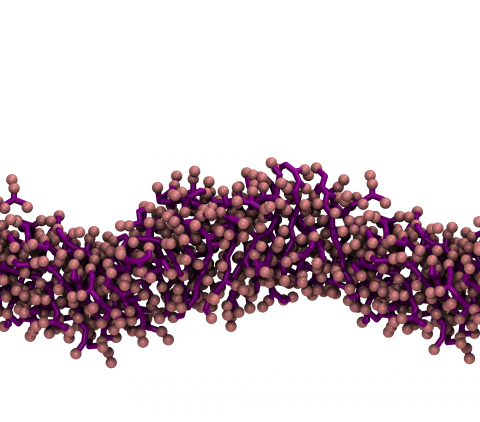 For example, the peptides in the simulation below, are specifically designed to self-assemble into nanofibrils. The nanofibril formation is observed in our simulations in agreement with experiments.