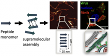 Similar to the self-assembly of peptide amphiphiles, aggregation of amyloid β into fibrils found in brains of Alzheimer’s patients results from the intramolecular and intermolecular hydrogen bonding interactions that lead to formation of β-sheet networks. Alzheimer’s disease (AD) is a progressive, neurodegenerative disorder associated with memory loss and cognitive decline. Pathologically AD is characterized by aggregation of the amyloid beta (Aβ) peptide into extracellular amyloid plaques and the formation of intracellular tau tangles. The aggregation of the soluble peptide Aβ... Read More